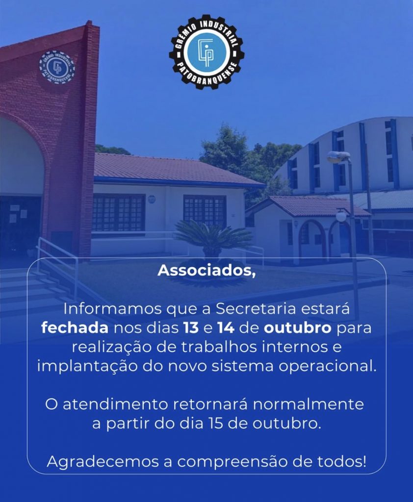 GremioIndustrialPatobranquense #AvisoImportante #Atendimento